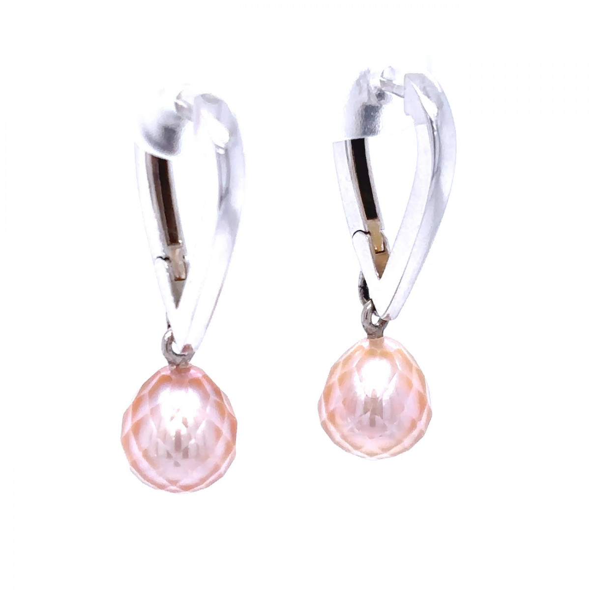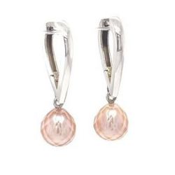 Náušnice z bílého zlata doplněné zavěšenou broušenou perlou. Spojení jemného lesku bílého zlata v kombinaci s něžným odstínem perly vytváří elegantní šperk.