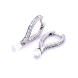 Tyto velice luxusní náušnice z bílého zlata jsou tvořeny ze dvou částí. Vrchní část je v ladné linii osázená drobnými diamanty, které doplňují spodní část, kde jsou zavěšené diamantové kapky (tzv. drops). Při každém pohybu hlavou hážou diamantové kapky nádherné odlesky.