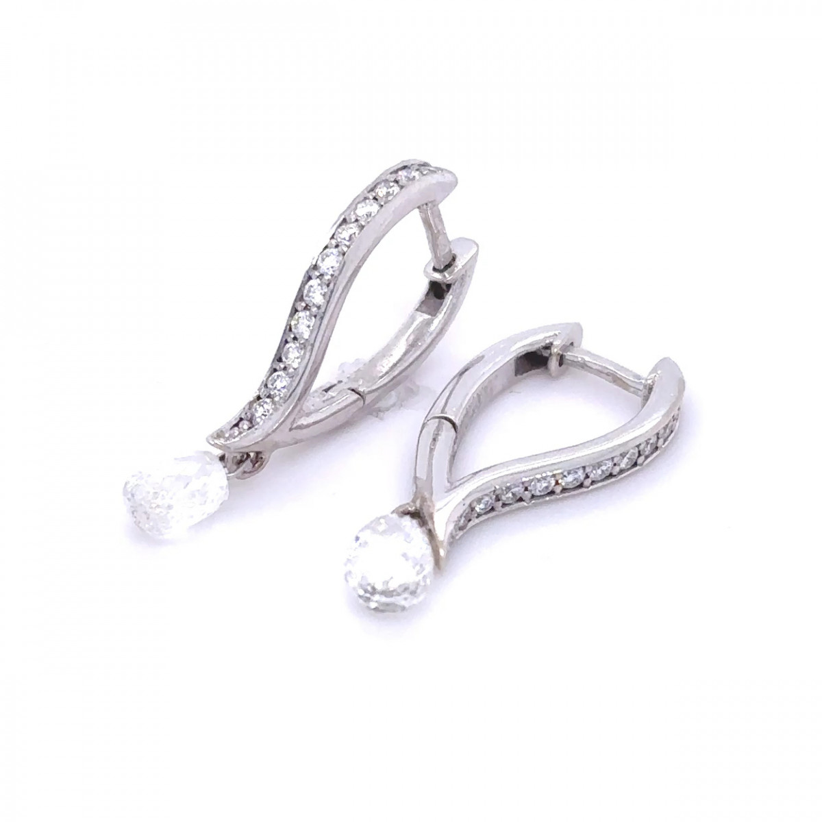 Materiál: bílé zlato, Váha: 1,95g, Kameny: 2ks diamanty drops (briolet) 1,03ct VS1-E, 22ks diamantů= 0,165ct SI1-F