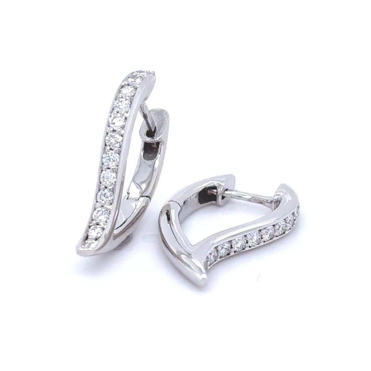 Tyto náušnice z bílého zlata jsou osázené diamanty v řadě za sebou tzv. pavé set. Náušnice zaujmou svým originálním designem. Při pohledu zboku mají tvar zaoblené slzy.