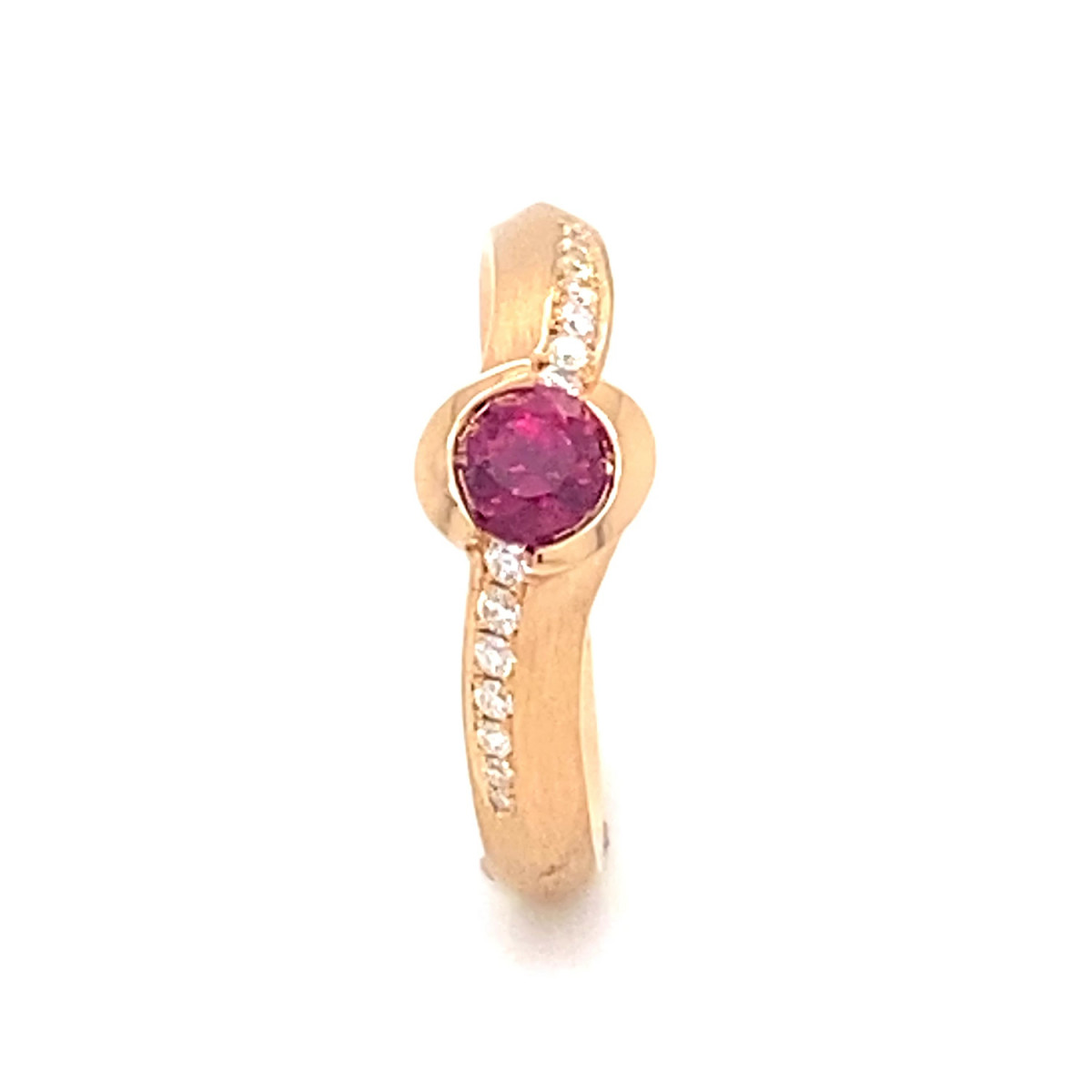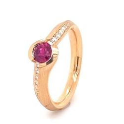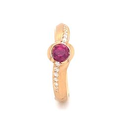 Materiál: růžové zlato, Váha: 5,15g, Kameny: 14 ks diamantů 0,08ct Si1-F, rubín 0,65ct