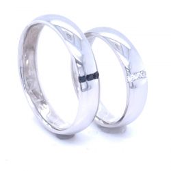 Black and white - tyto snubní prsteny z platiny s diamanty vypadají velmi jednoduše, ale zároveň velmi neotřele. V půlkulatém leštěném profilu jsou zasazené v rovné linii v dámském prstenu 3 bílé diamanty a v pánském prstenu 3 černé diamanty. Šířka snubních prstýnků je 4,5mm a jsou určené pro odvážné muže, kteří se nebojí nosit něco neotřelého.